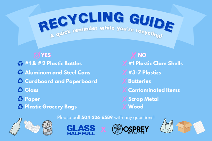 Thank you for being a loyal Earth Resources customer. After 10 years of service to the community, Braxton & Nicole have entrusted Osprey Initiative and Glass Half Full to carry forward the mission of high-quality, reliable recycling. We’re excited to welcome you to our recycling family and ensure that your transition is seamless.